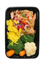 Indulge in our delectable Smoked Salmon Meal, featuring tender salmon, nutritious vegetables, and fluffy rice. Perfectly portioned and ready to enjoy.